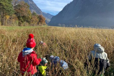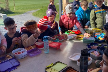 Unter dem Jahresmotto "Ab nach draussen" organisieren Partnerklassen des Zyklus 1 und 2 übers Jahr verteilt immer wieder lehrreiche und spassbetonte Halbtage im Freien, die vor allem auch das soziale Miteinander fördern sollen.