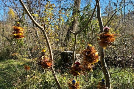 Jede Schülerin und jeder Schüler hat im Schuljahr 2022/23 zu einem einzigartigen eingekleideten Baum auf dem beigetragen. Er steht in voller Pracht im Innenhof des Schulhauses der Oberstufe Ried.