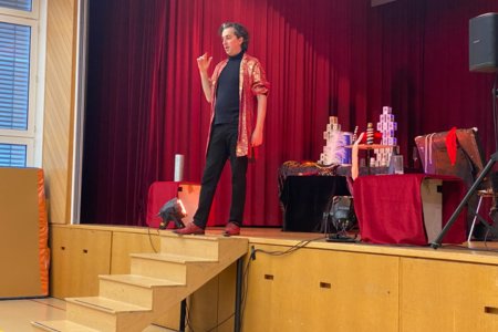 Mit Anekdoten und Erzählungen aus Afrika begeisterte Ibrahima Ndiaye, kurz Ibo, die Kinder aus der Unterstufe und den Kindergärten Landquart. Er erzählte Geschichten von seiner Grossmutter, und wie der Elefant zu seinem Rüssel kam. Mittels Musik, Gesang und Bewegungen zog er die Kinder in seine Erzählungen mit ein. Auch die Lehrpersonen konnten da nicht still sitzen!