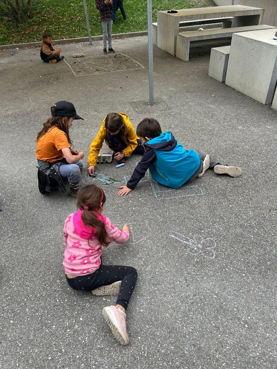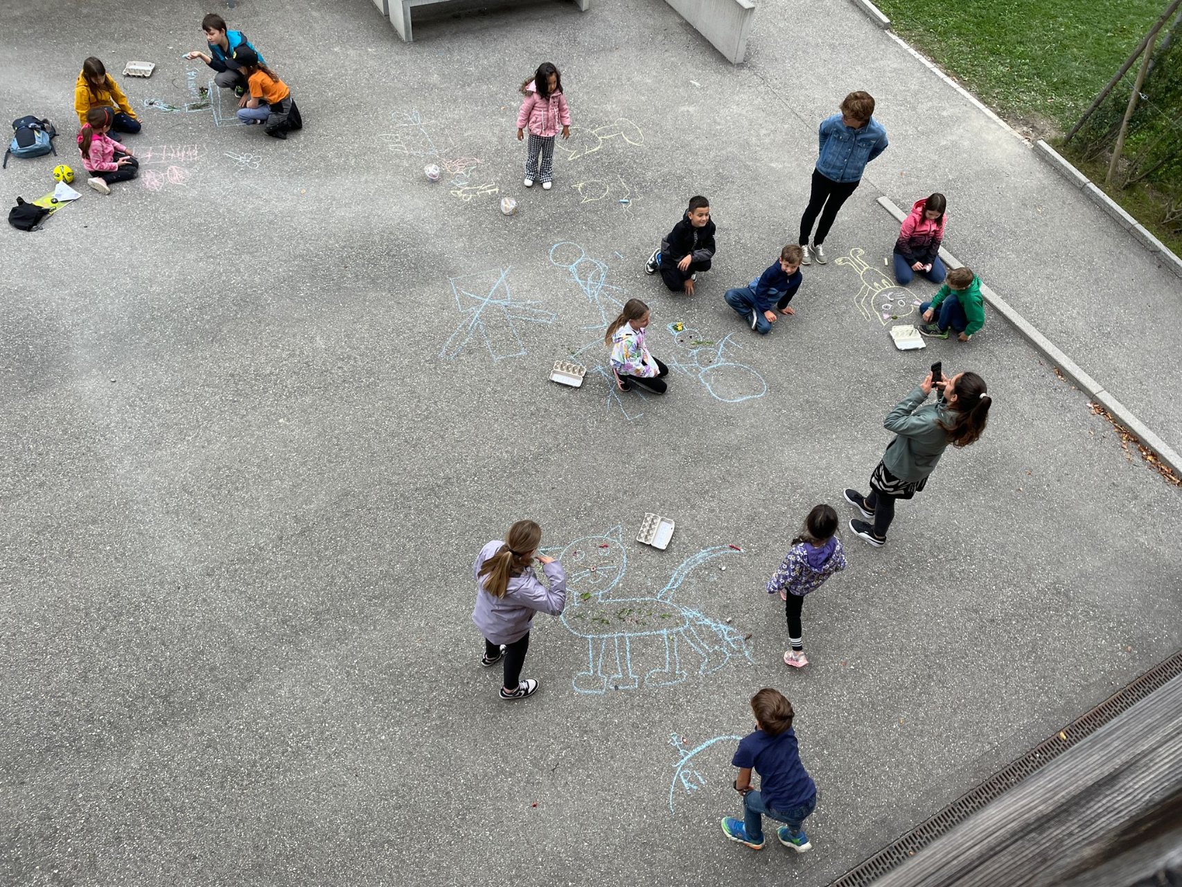 Am 30.09.2025 haben die Kinder der Klasse 3c gemeinsam mit den Kindergartenkindern von Frau Evolo einen tollen Nachmittag verbracht. Unter dem Motto „Ab nach draussen“ wurden auf dem Schulgelände allerlei Schätze gesammelt, aus denen die Kinder fantasievolle Kunstwerke gestaltet haben. Es war ein schöner Nachmittag, bei dem die Kinder miteinander spielen, entdecken und gestalten konnten.