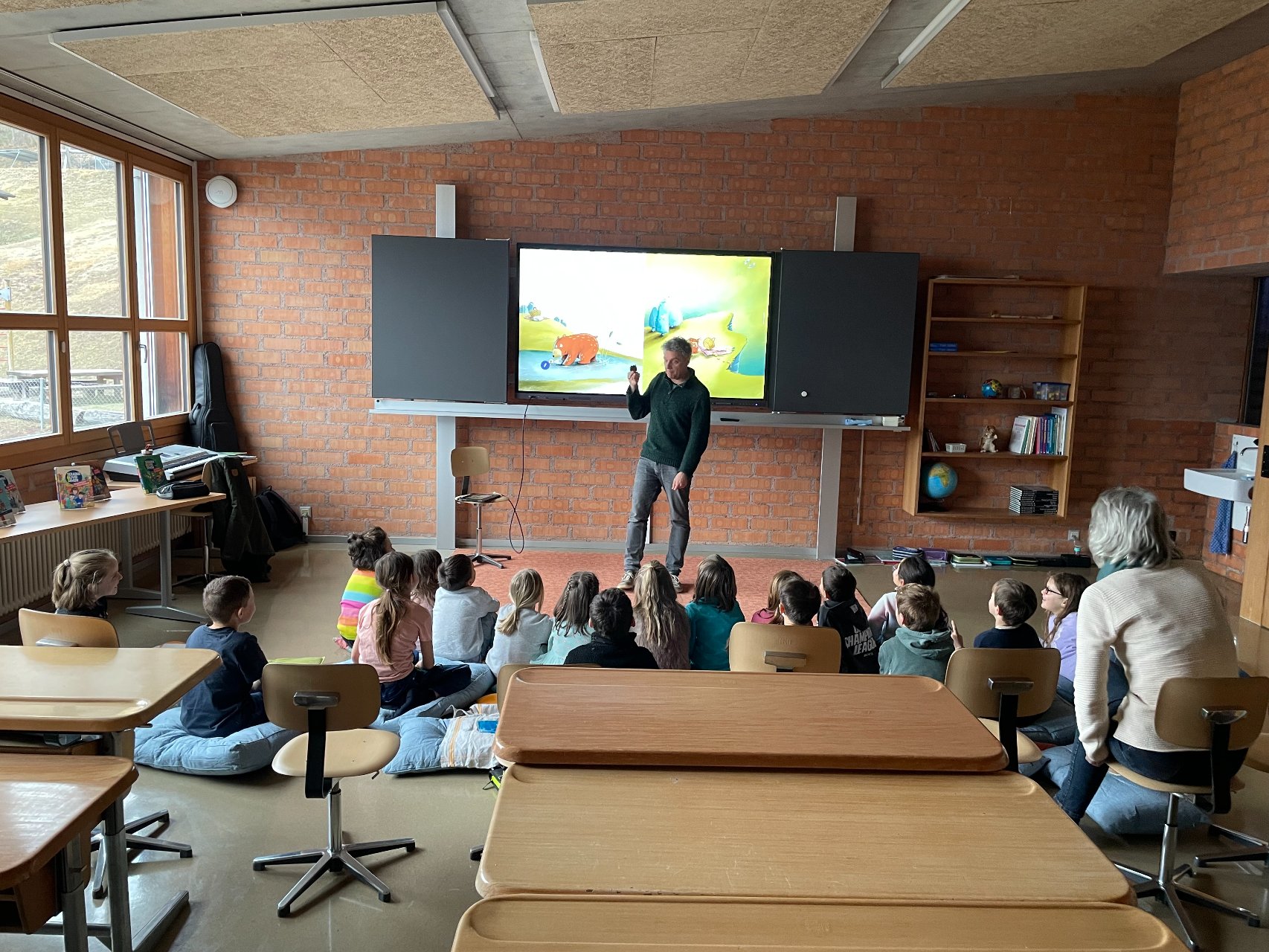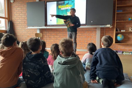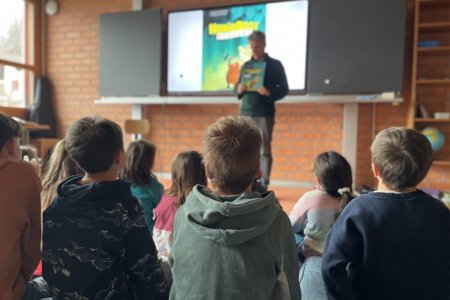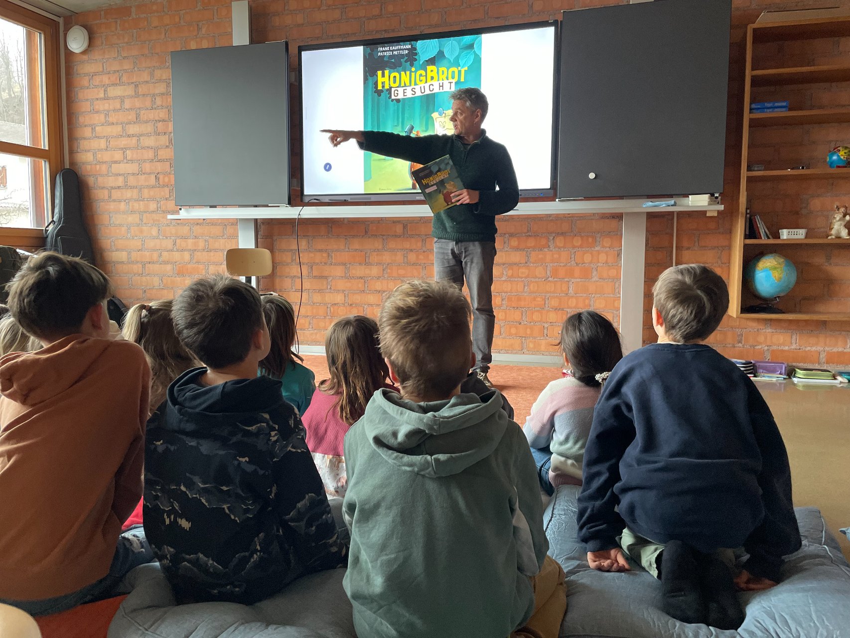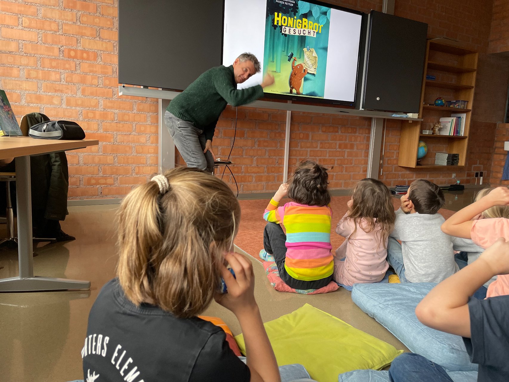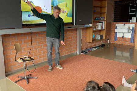 Im Zyklus 1 las Frank Kaufmann aus seinem Bilderbuch Honigbär vor. Dabei erfuhren die Kinder, was alles dazu gehört, bis ein Bilderbuch veröffentlicht wird. Der Blick hinter die Kulissen begeisterte die jungen Zuhörerinnen und Zuhörer besonders.