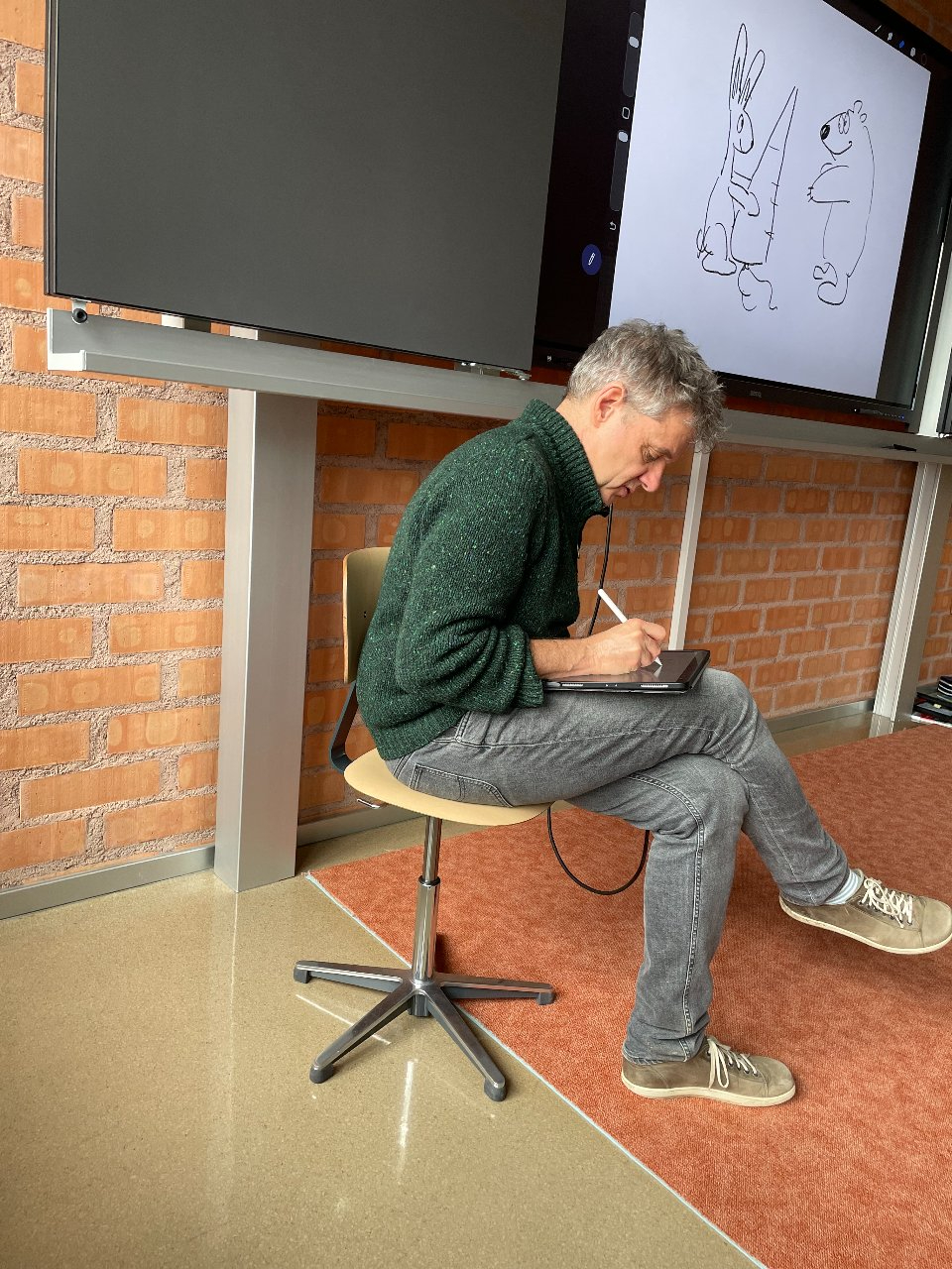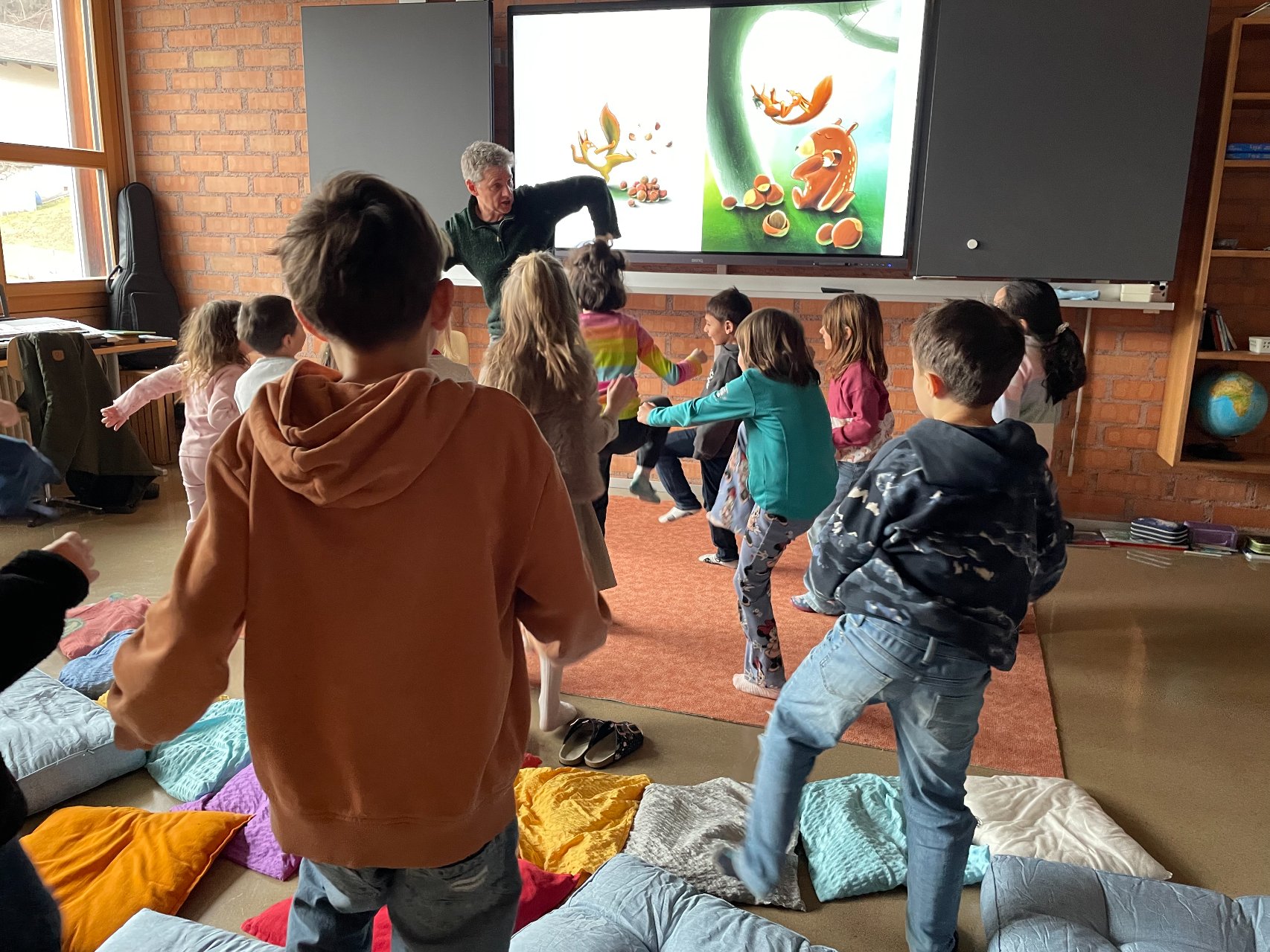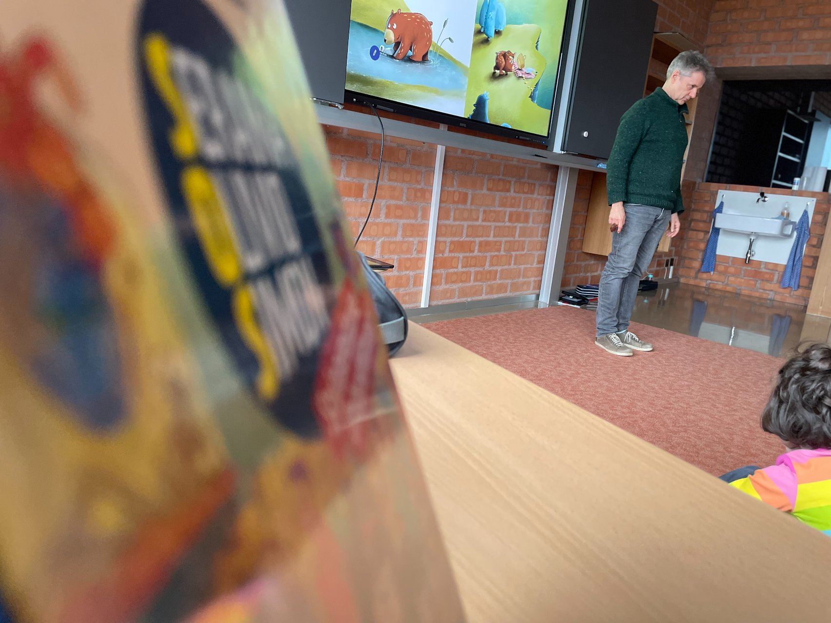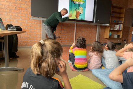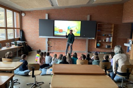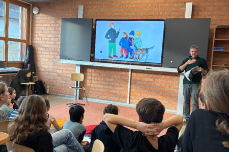 Im Zyklus 1 las Frank Kaufmann aus seinem Bilderbuch Honigbär vor. Dabei erfuhren die Kinder, was alles dazu gehört, bis ein Bilderbuch veröffentlicht wird. Der Blick hinter die Kulissen begeisterte die jungen Zuhörerinnen und Zuhörer besonders.