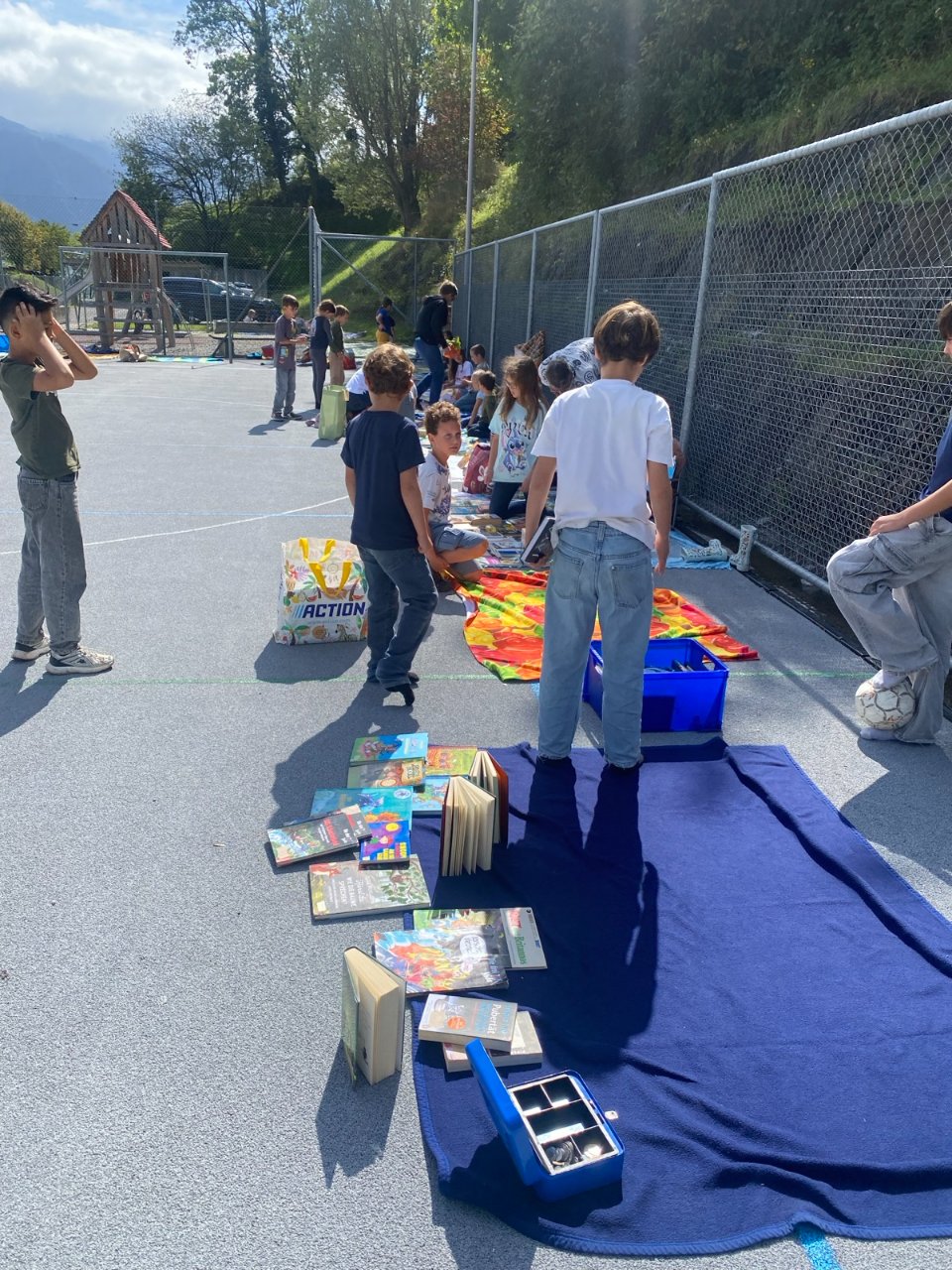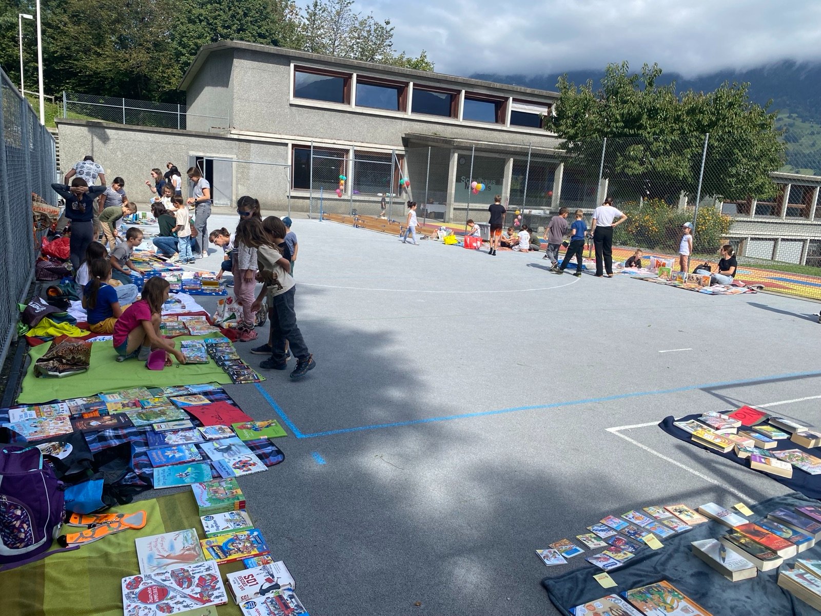 Im September fand an der Schule Mastrils ein besonderer Anlass statt: ein Bücherflohmarkt, ganz im Zeichen des Mottos „Abenteuer im Kopf“. Die Kinder durften von zu Hause Bücher mitbringen, diese auf einer Decke oder einem Teppich ausbreiten und verkaufen. Dabei wurde nicht nur fleissig gehandelt, sondern auch gleich das Rechnen mit Geld auf spielerische Weise vertieft. Gleichzeitig bot sich die Gelegenheit, Platz im eigenen Regal zu schaffen und neue Lieblingsbücher zu entdecken.