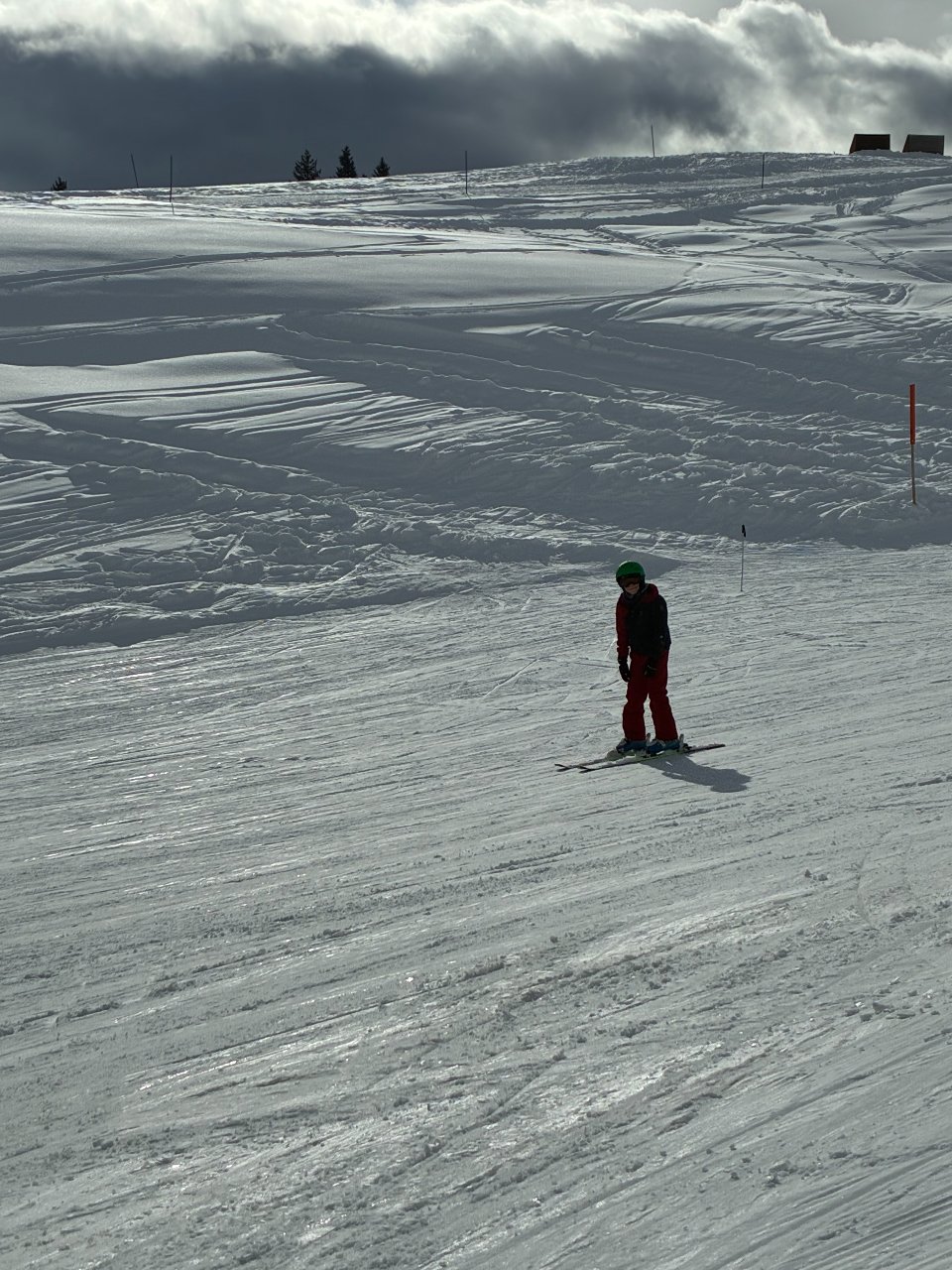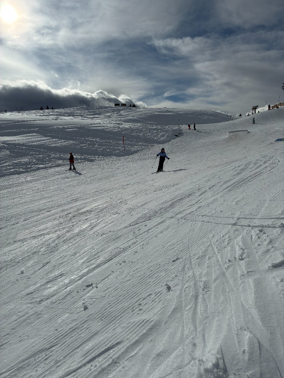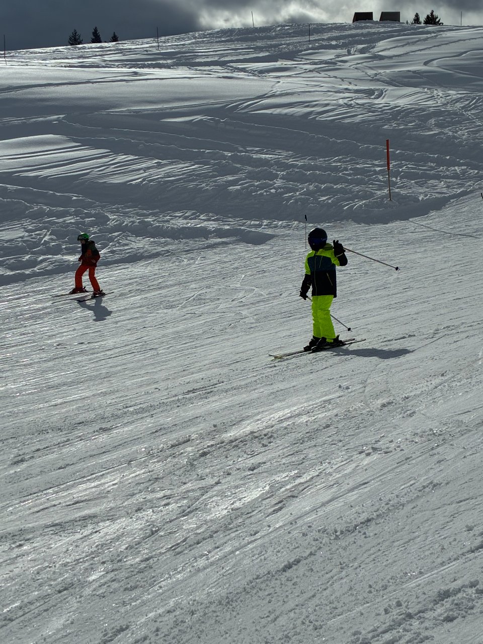 Einmal verschoben hofften wir am zweiten Tag auf besseres Wetter für den Skitag. Nach Wind, Regen und Schnee zeigte sich tatsächlich die Sonne und wir konnten die Pisten in vollen Zügen geniessen. Die Freude über die guten Bedingungen war bei allen deutlich spürbar.