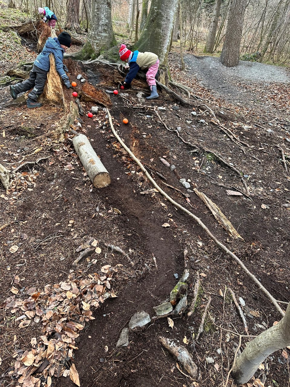 Regelmässig gehen die Kindergartenkinder in den Wald und erleben beim kreativen Gestalten die Natur mit allen Sinnen. Sie fühlen, entdecken, bauen und experimentieren. Gleichzeitig wird durch das gemeinsame Tun das soziale Miteinander gefördert und gestärkt.