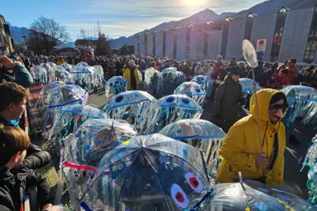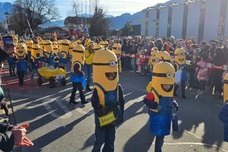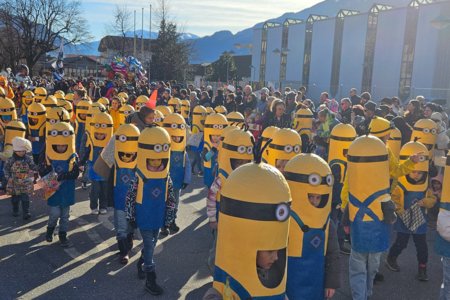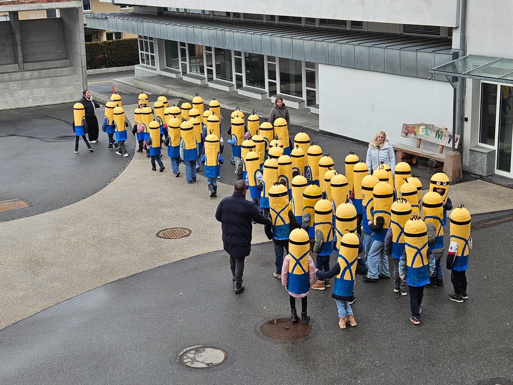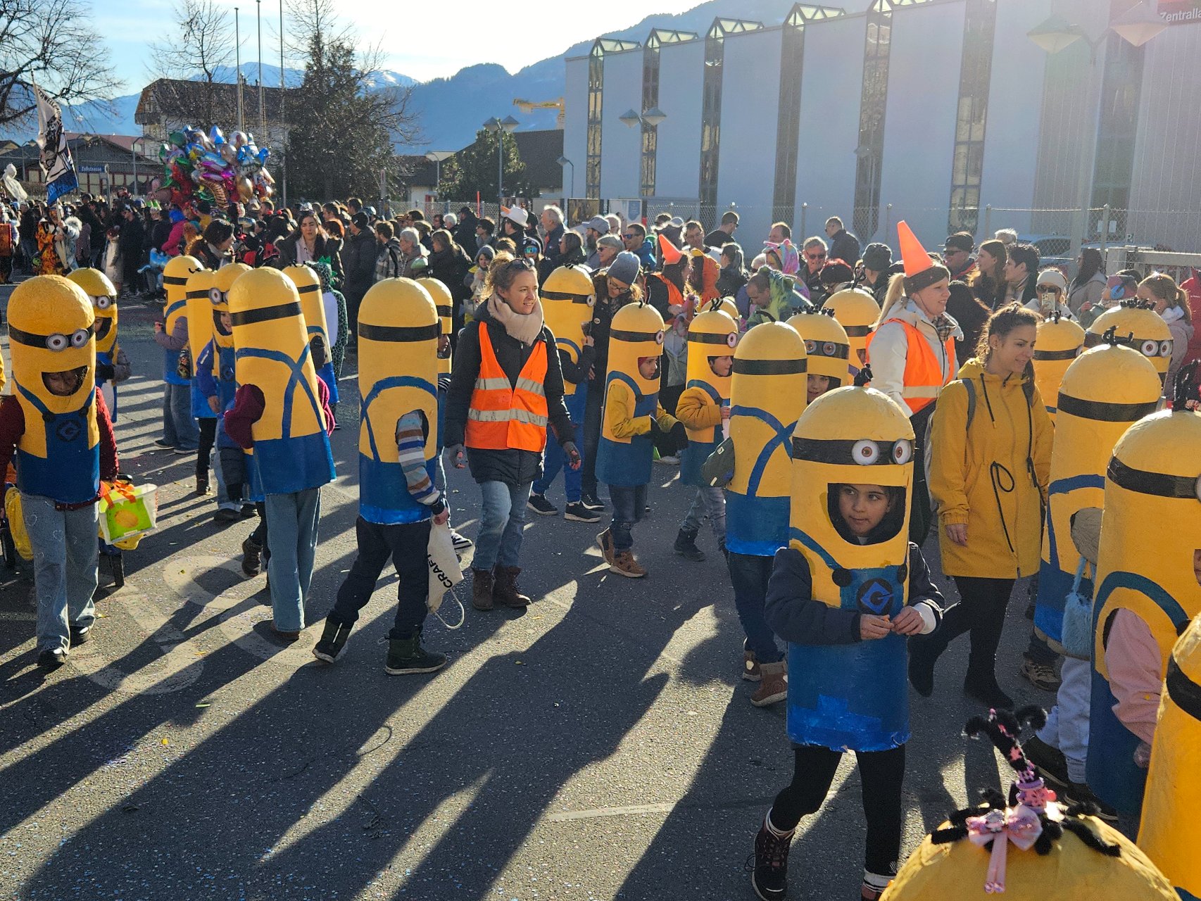 Die 1. und 2. Klassen aus Igis wurden durch eine Klasse aus Landquart unterstützt. Gemeinsam zogen sie als lustige Minions durch die Strassen. Mit ihren gelben Kostümen waren sie nicht zu übersehen und verbreiteten sofort Fasnachtsstimmung. Lachend warfen die Kinder Konfetti in die Menge, verteilten Zückerli und winkten den ZuschauerInnen zu. Strahlender Sonnenschein und ein tiefblauer Himmel machten den Umzug zu einem rundum gelungenen Erlebnis. Besonders schön war die herzliche Stimmung entlang der Route.