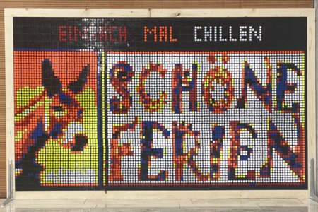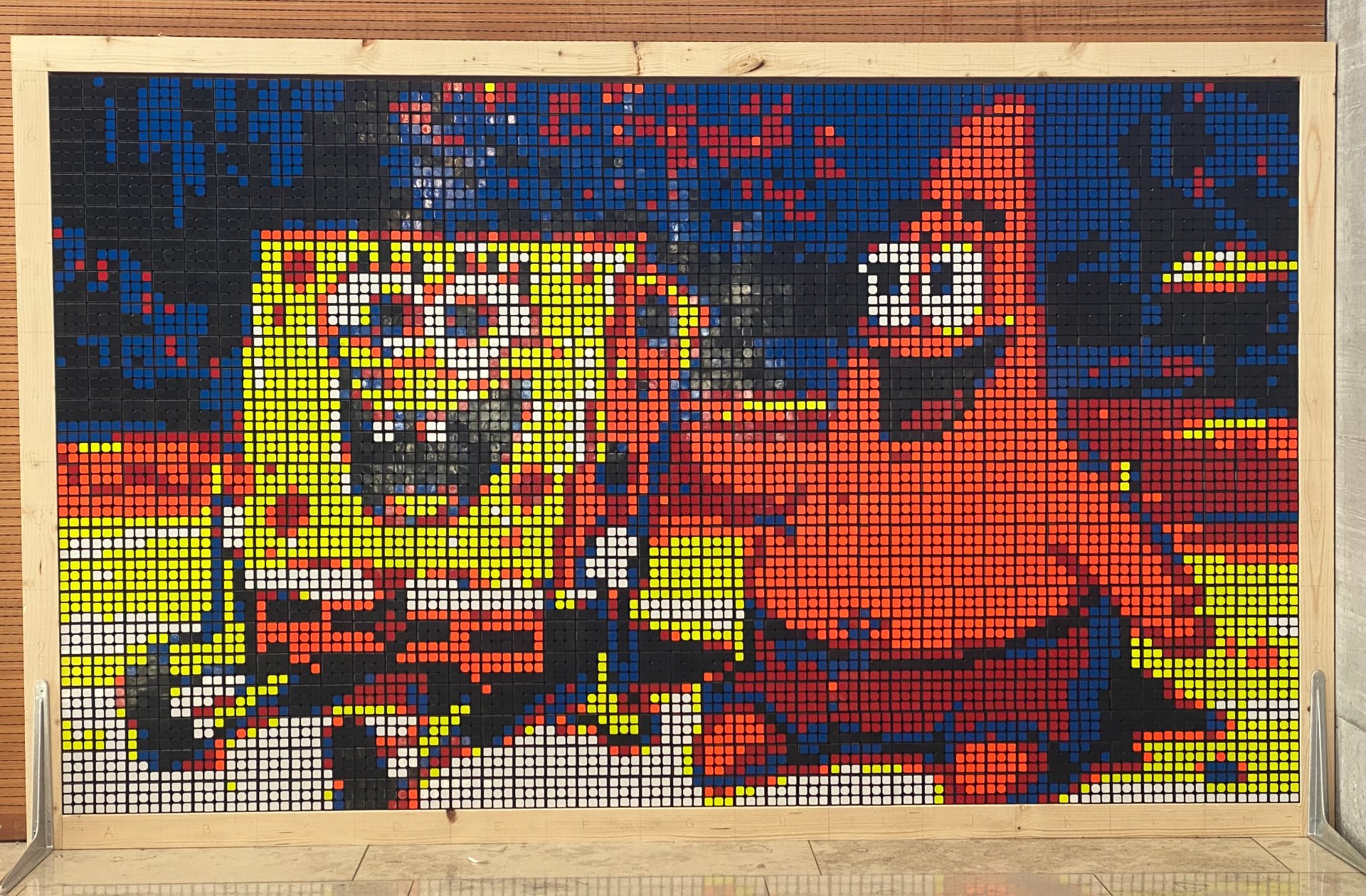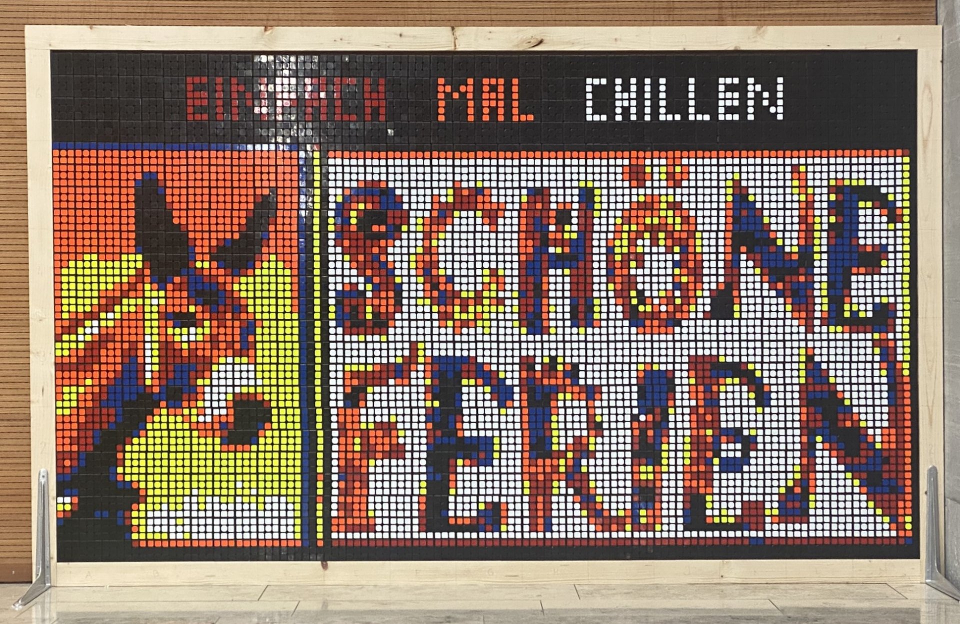 Angestossen durch eine Weiterbildung und ein Projekt unseres AHA-Zimmers, entstand in nur einem Tag aus 936 Rubik's Cube Würfeln der coole Kater Garfield. Zuvor war es unser Schulhaus aus der Vogelperspektive. Schon genial, was aus den Würfeln alles entstehen kann, wenn begeisterte Kinder und Lehrpersonen daran drehen.