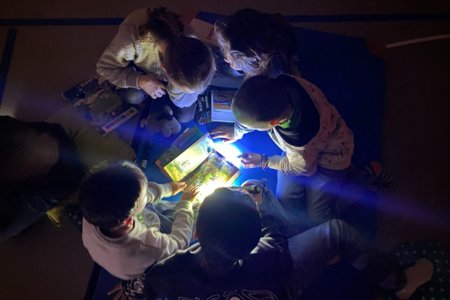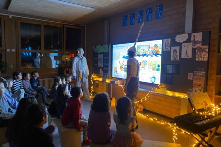 Schule mal ganz anders, nämlich dann, wenn es dunkel ist: Im Rahmen des Jahresmottos „Abenteuer im Kopf“ trafen sich die Kinder am Freitagabend im Schulhaus. Ausgerüstet mit ihrem Lieblingsbuch und einer Taschenlampe machten sie sich bereit für eine ganz besondere Lesenacht. Das diesjährige Thema lautete Zukunft, und so wurden die Kinder gleich zu Beginn von einer beeindruckenden Zeitmaschine empfangen, die mit Lichtspektakel und Rauch in der Eingangshalle „landete“.