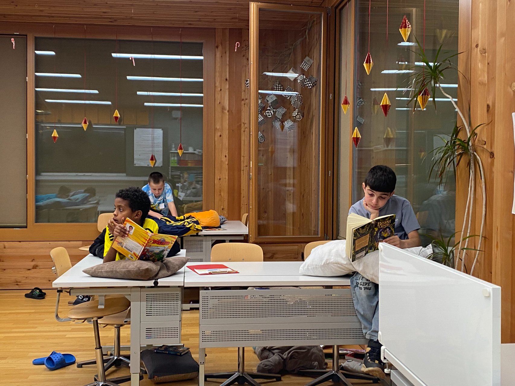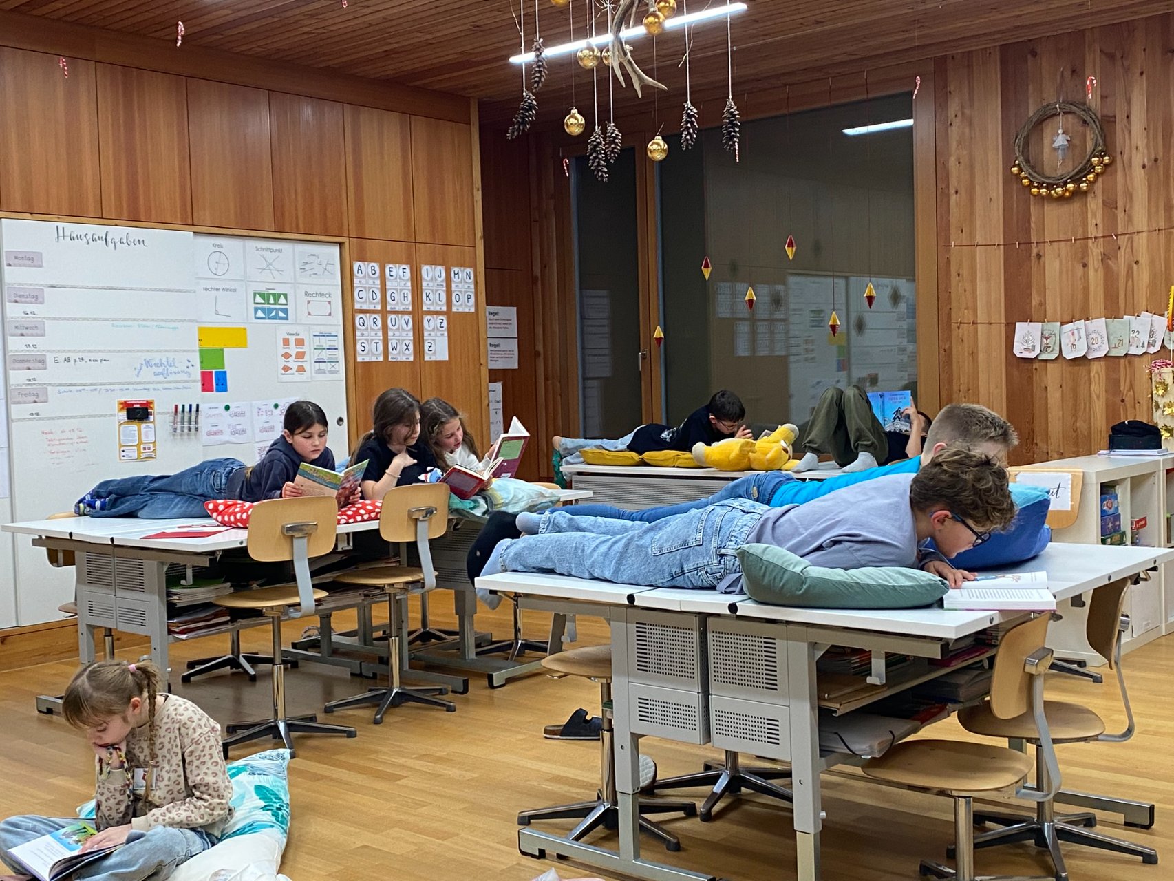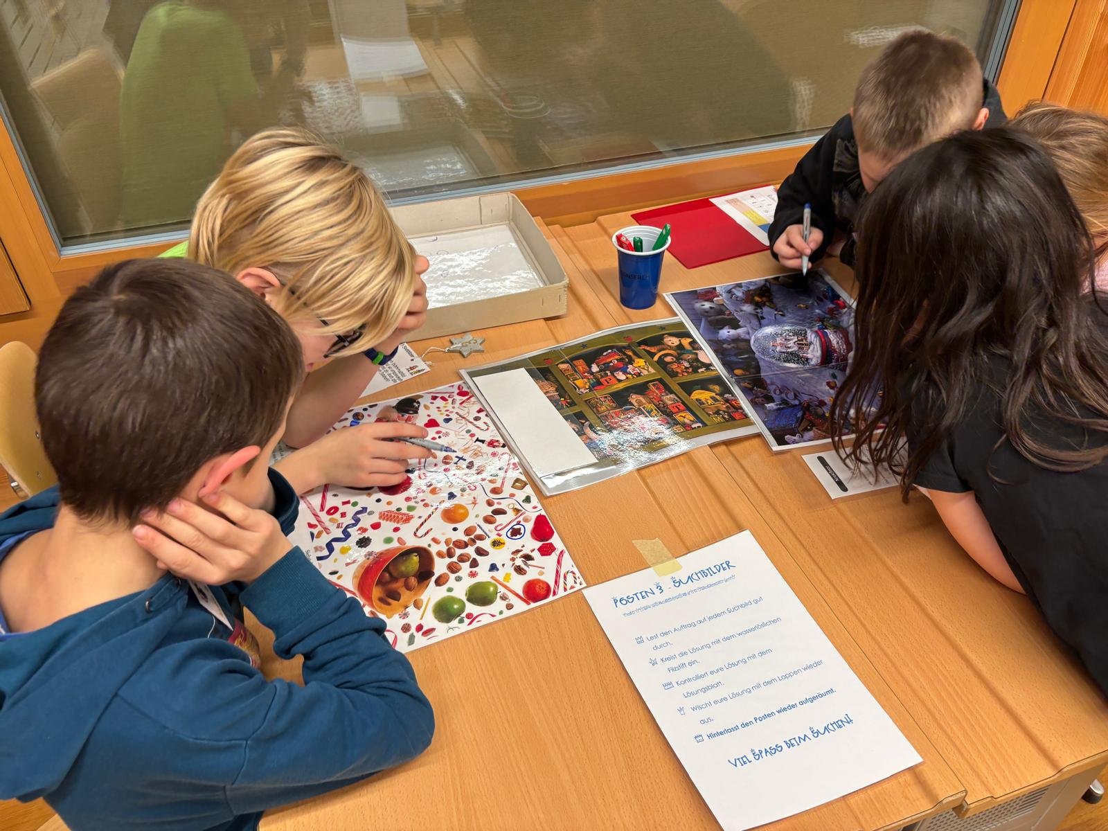 Die Nacht vom 16. auf den 17. Dezember wurde heiss herbeigesehnt - zumindest von den Igiser Drittklässlern. Endlich konnte die Lesenacht zum Thema «Weihnachtswerkstatt» über die Bühne gehen. An 14 verschiedenen Posten wurde viel gelesen, gerätselt, nach Anleitung gebastelt, verziert, gesucht, ertastet,… einfach auf ganz vielfältige Art und Weise gelesen. Natürlich kamen auch das Vorlesen und das «Stille Lesen» nicht zu kurz.