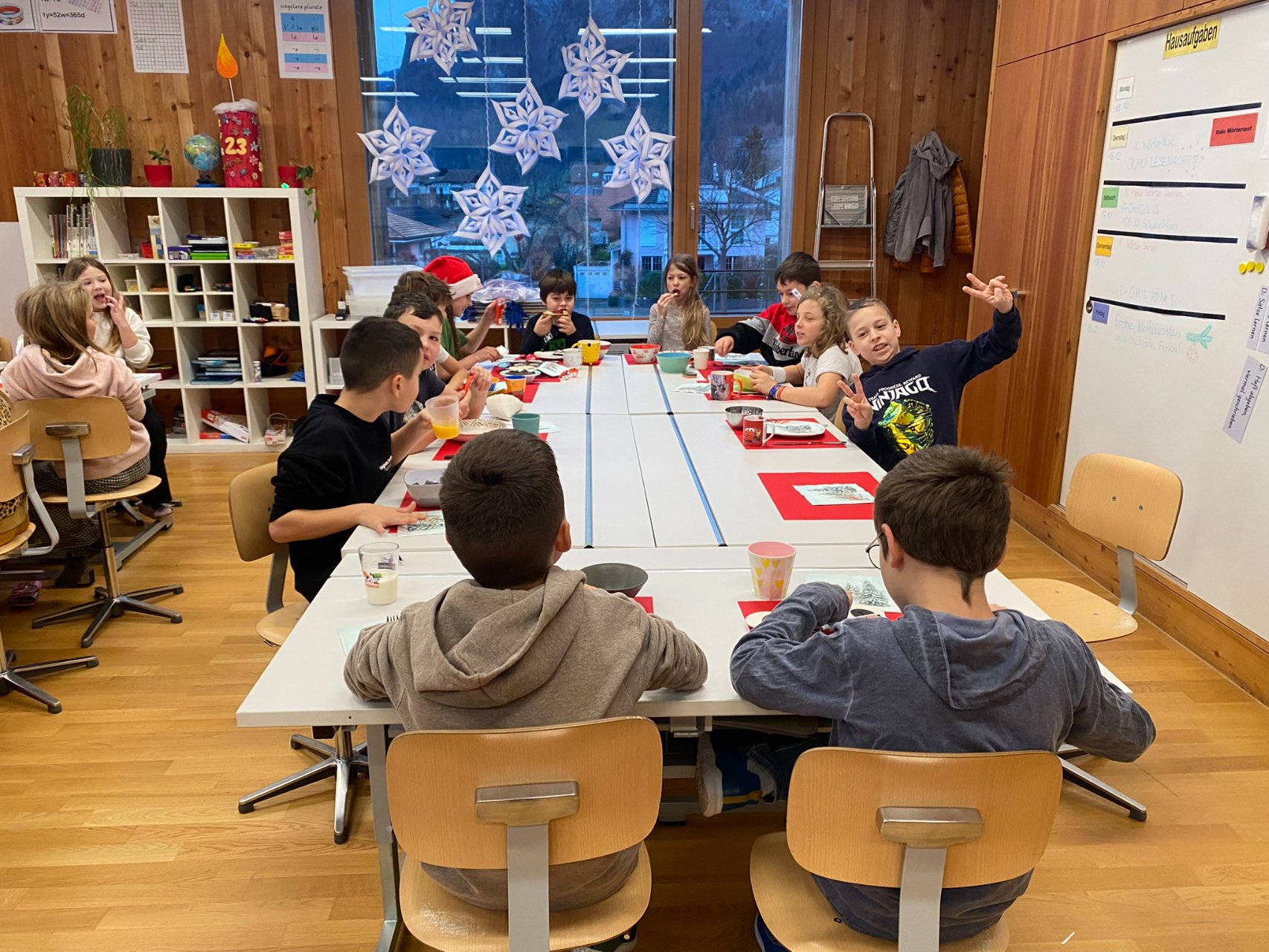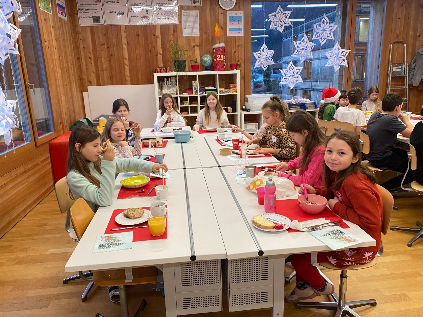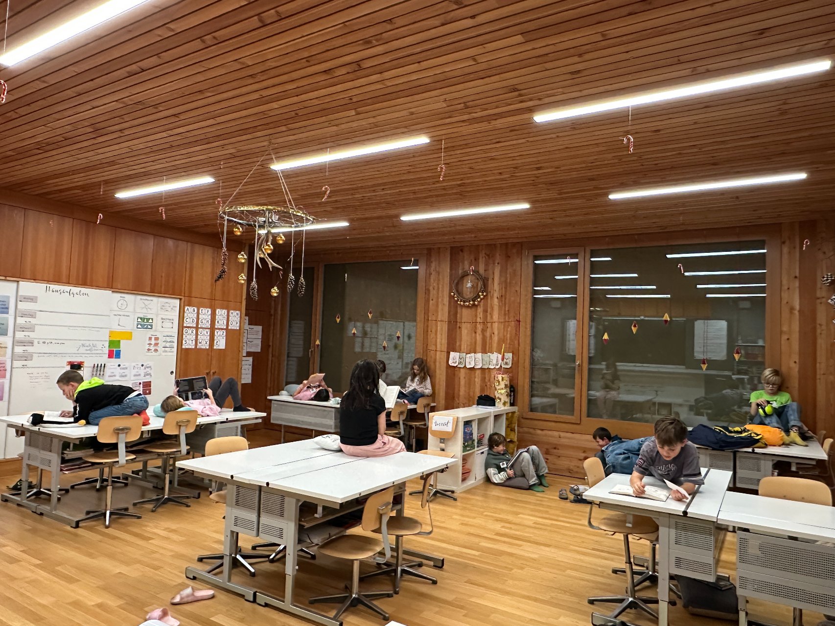 Die Nacht vom 16. auf den 17. Dezember wurde heiss herbeigesehnt - zumindest von den Igiser Drittklässlern. Endlich konnte die Lesenacht zum Thema «Weihnachtswerkstatt» über die Bühne gehen. An 14 verschiedenen Posten wurde viel gelesen, gerätselt, nach Anleitung gebastelt, verziert, gesucht, ertastet,… einfach auf ganz vielfältige Art und Weise gelesen. Natürlich kamen auch das Vorlesen und das «Stille Lesen» nicht zu kurz.