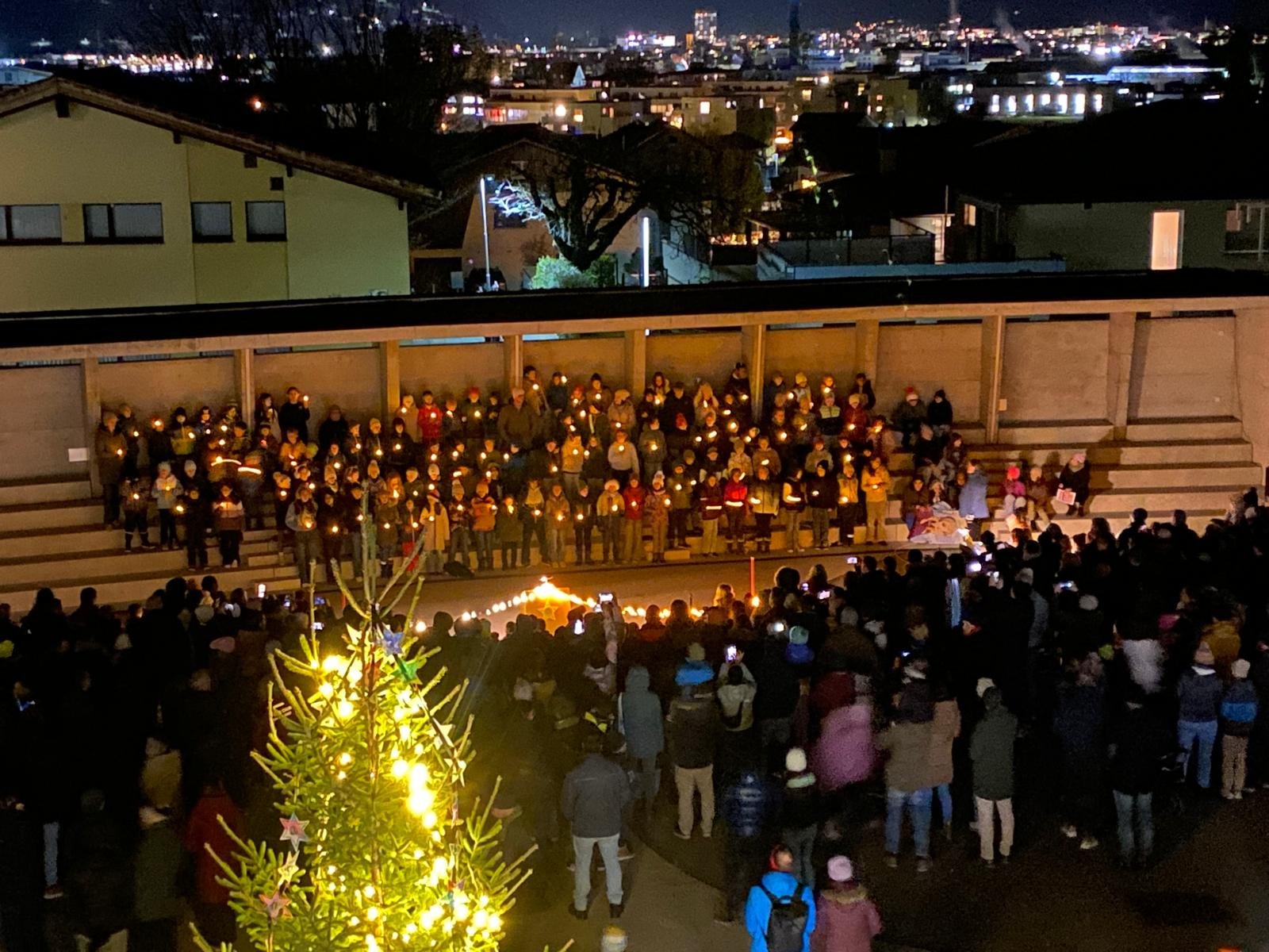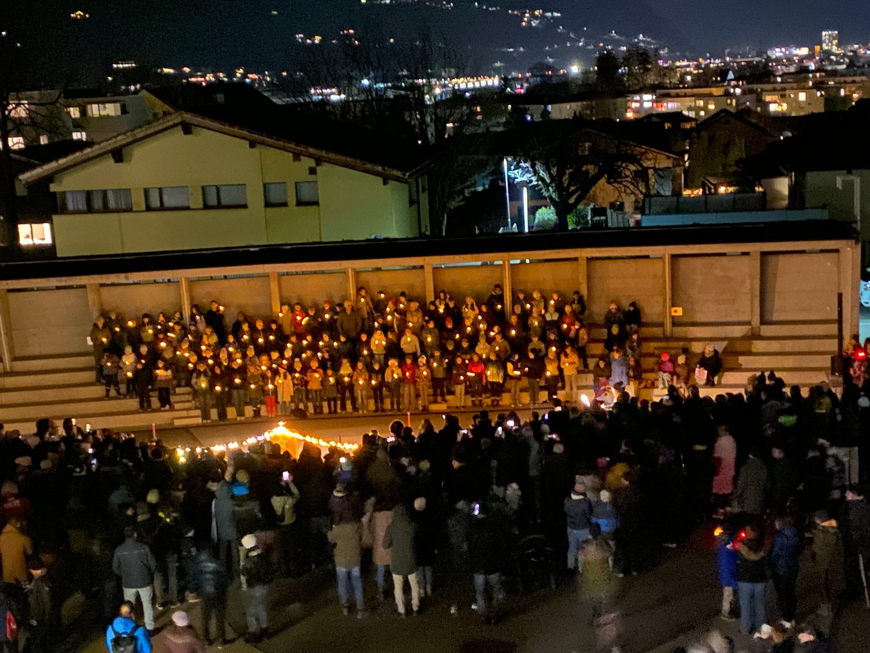 Am 11. Dezember haben sechs «Singklassen» und viele Erzähler aus den unterschiedlichsten Klassen unter der Leitung von Debora Oyucho die Weihnachtsgeschichte aufleben lassen. Alle Texte sind von Kindern geschrieben und vorgetragen worden und auch die Mitsinglieder wurden mit viel Gefühl vorgetragen. Ein grosses Kompliment vor allem an all die mutigen Solosänger und -sängerinnen, aber auch generell an alle, die teilgenommen haben: Super gemacht!