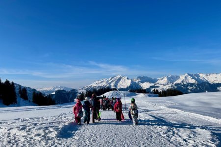"Als ich in der Schule ankam, waren schon sehr viele Kinder da. Ich war schon sehr aufgeregt, weil ich mit meinen Kollegen eingeteilt war. Dann hab ich mir die Skischuhe angezogen und dann ging es auch los. Es gab Gruppeneinteilungen: Ski, Kinderland Sessellift und Bügellift. Snowboard auch Kinderland, Sessellift und auch Bügellift. Aber wer nicht Ski und Snowboard fahren wollte oder konnte, der konnte Winterspazieren also im Schnee. Sie durften auch einen Rutschteller mitnehmen. Als wir richtig eingestanden waren, haben wir einen Kleber auf den Helm bekommen als Kennzeichnung. Mit der Gruppe sind wir in den Bus eingestiegen und sind nach Grüsch Danusa gefahren. Als wir angekommen waren, sind wir in die Gondel eingestiegen und sind nach oben gefahren. Ich habe mich beim Sessellift eingetragen. Bevor wir los gehen durften, mussten wir eine kleine Testfahrt im Kinderland machen, um zu sehen, ob man bremsen und Kurven machen kann. Ich bin mit meiner Gruppe und unseren Begleitpersonen alle blauen Pisten gefahren. Dann haben wir Znüni gegessen und uns ein wenig ausgeruht. Dann ist eine andere Gruppe gekommen und hat uns gefragt, ob wir mit ihnen in die Mittelstation gehen wollen. Unsere Leiter haben gesagt, dass ich sicher mitgehen kann. Alle konnten nicht mitgehen, weil sie nicht gut genug fahren konnten. Wir sind runtergefahren und mit der Gondel wieder rauf gefahren. Dann gab es Mittagessen. Alle hatten ihr eigenes Picknick dabei. Wir haben ein Buffett gemacht und dann gegessen. Dann zusammengepackt und wieder mit der Gruppe Ski gefahren. Wir sind danach noch einmal mit der anderen Gruppe zur Mittelstation runtergefahren. Ganz unten angekommen konnte jemand nicht bremsen und ist in den Pfosten gefahren und hat sich den Arm gebrochen. Das war sehr schade und traurig. Als wir wieder oben waren, haben wir eine Pause gemacht und dann das letzte Mal runtergefahren und in der Mittelstation in die Gondel eingestiegen, um runterzufahren. Doch genau dann ist die Gondel etwa zehn Minuten stehengeblieben, einmal nach hinten und endlich wieder in die normale Fahrtrichtung. Bei der Talstation sind wir in den Bus eingestiegen und zurück zur Schule gefahren.
